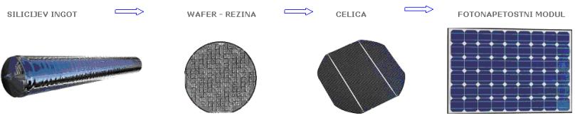 „Fotoelektrični efekt” ali „Fotoefekt” je odkril francoski fizik Alexandre Becquerel leta 1839. Odkril je, da določeni materiali, ko so izpostavljeni svetlobi ali toploti, sprostijo elektrone in tako ustvarijo enosmerni tok. Polprevodniki, kot je silicij naravni element peska ali proda, delno ustreza temu pogoju. Vsaka modra tanka PV celica je izrezana iz silicijevega ingota. Prvi praktični proizvod je prišel v produkcijo šele v 50-ih, ko je NASA začela uporabljati Fotovoltaične celice za zagotavljanje energetskega napajanja satelitov. Danes so Fotovoltaične celice v široki uporabi po vsem svetu. Imajo izkoristke med 12 in 17 %.