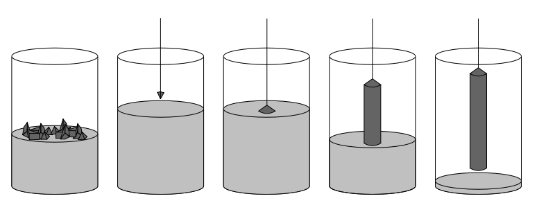 Dopiranje Uvod v kristalizacijo Začetek rasti kristalov Vlečenje ingota Formirani kristali
